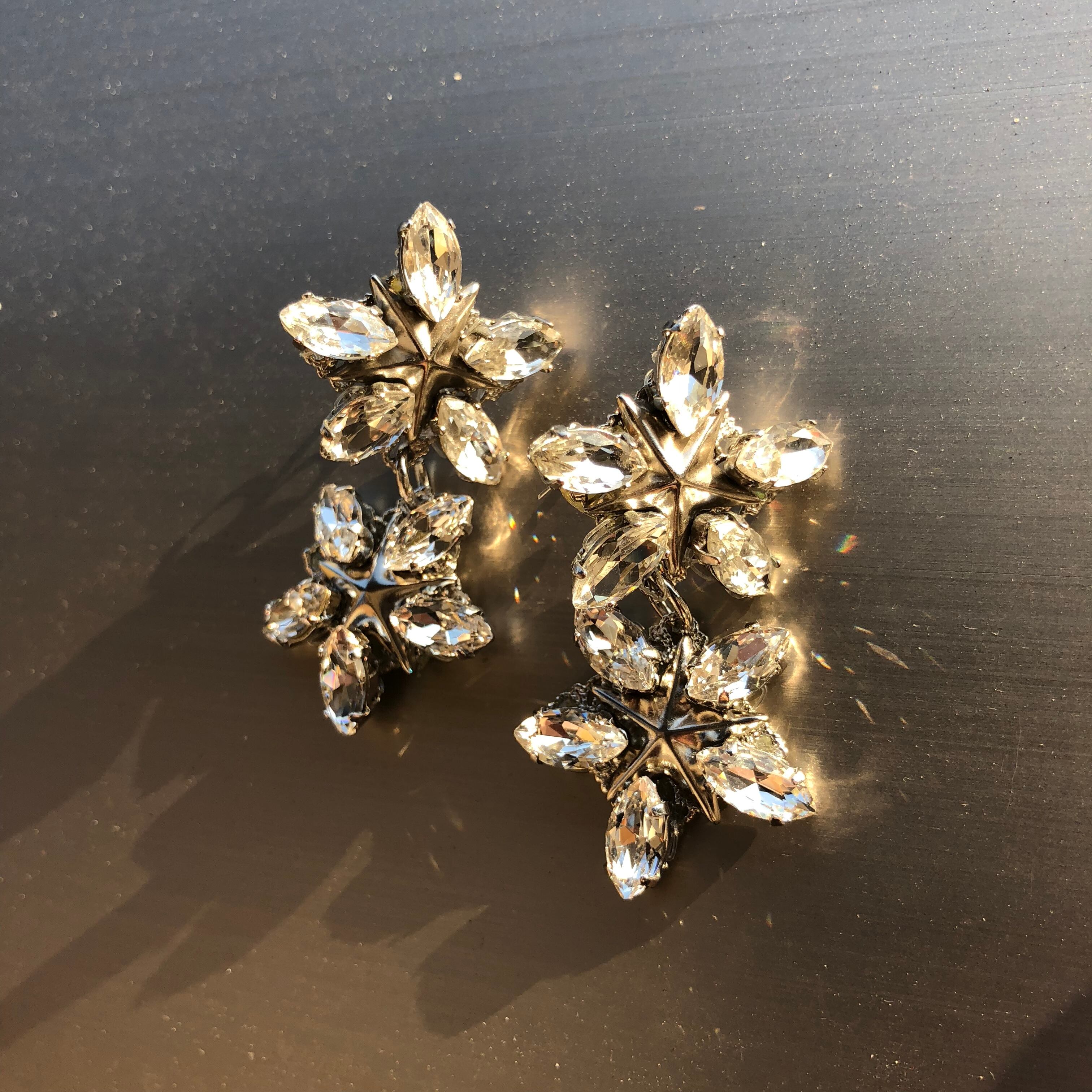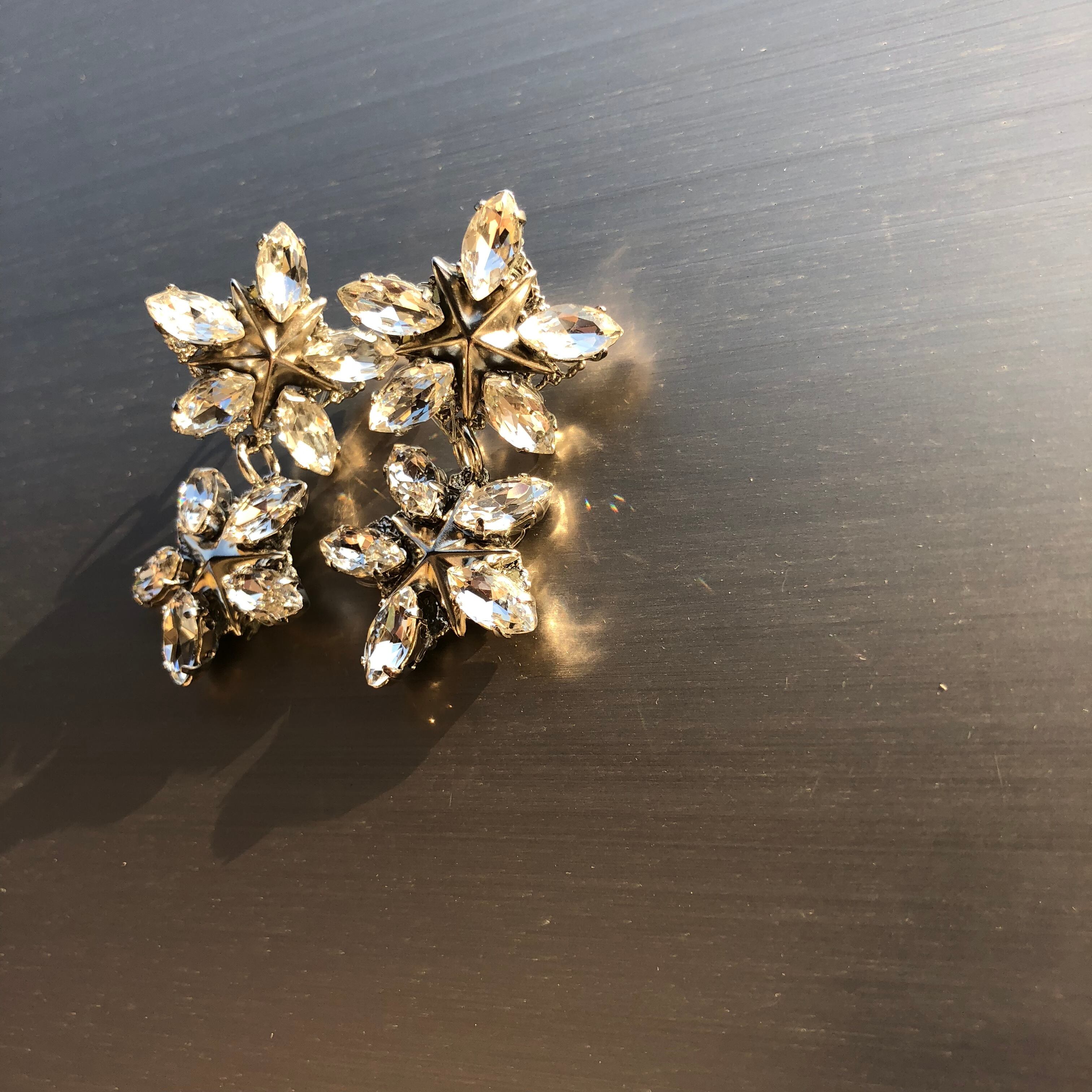 オリジナルデザインのflowerにもstarにもみえるパーツが2つも連なってキラキラする贅沢なピアスでとってもおすすめです♪