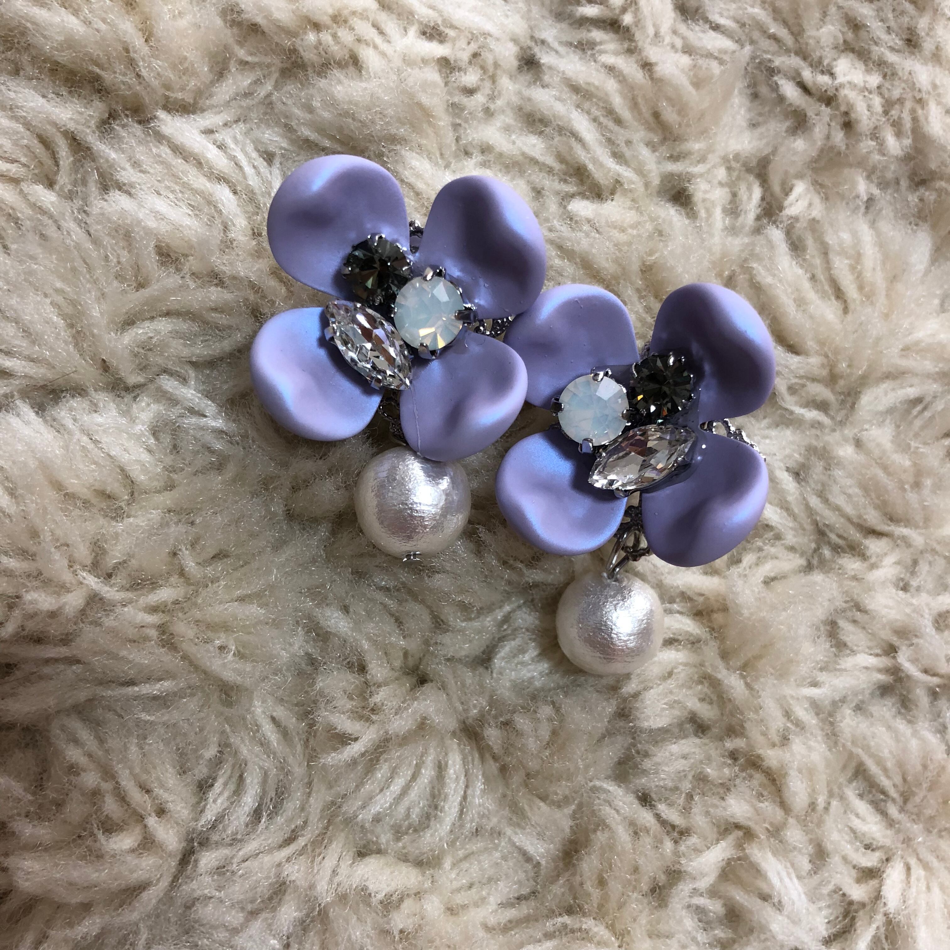 macaron flower シリーズのコットンパールがゆらゆらするデザインです。