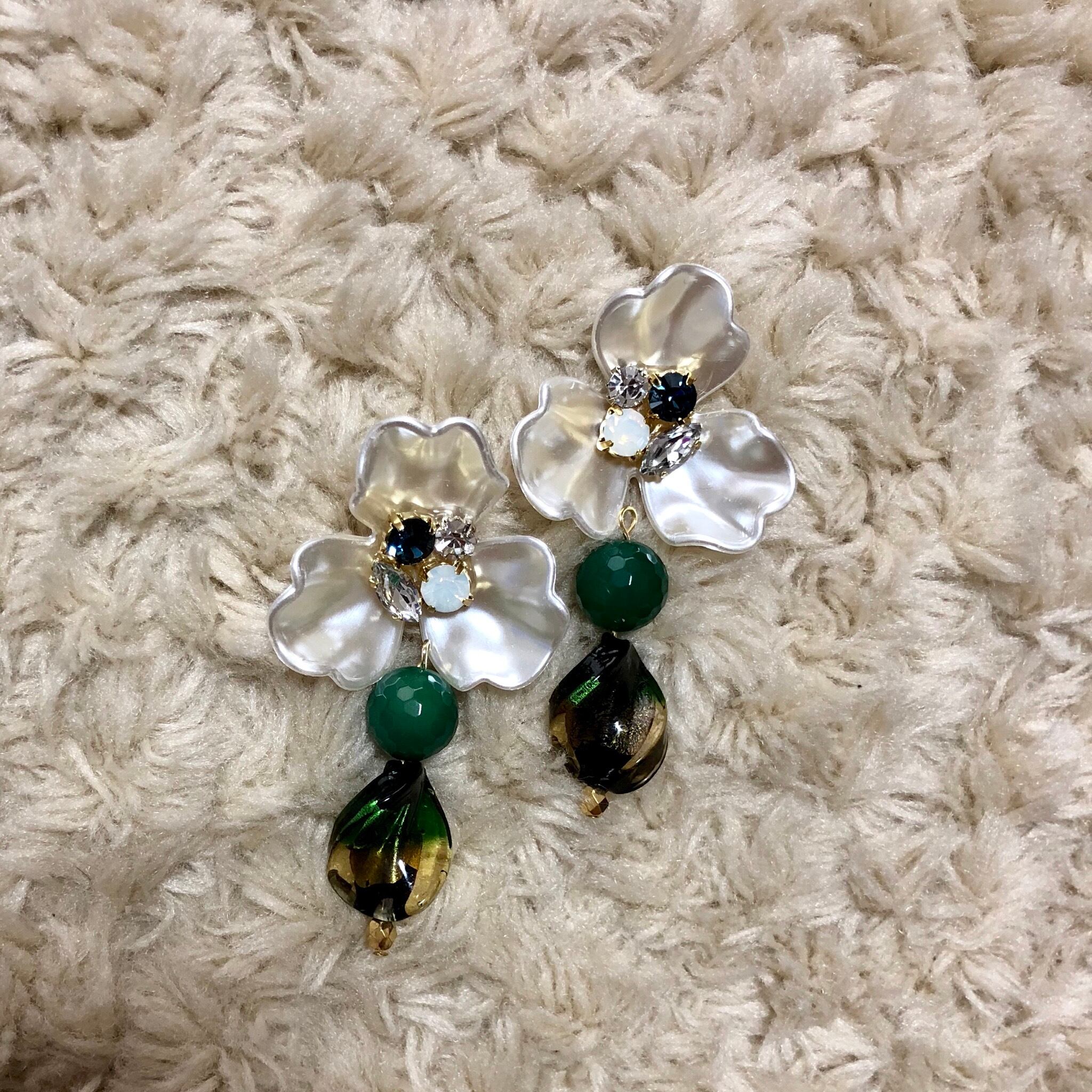 ピアスだとお花の傾きがでるため、イヤリングの方がおすすめなので、イヤリングで販売します。
