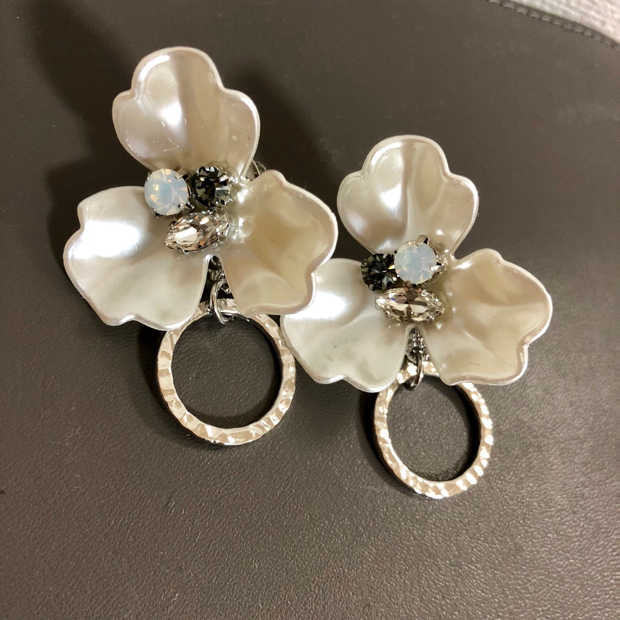 こちらのシリーズはお花の大きさによりピアスですと傾きが出やすいため、イヤリングとなっております☆