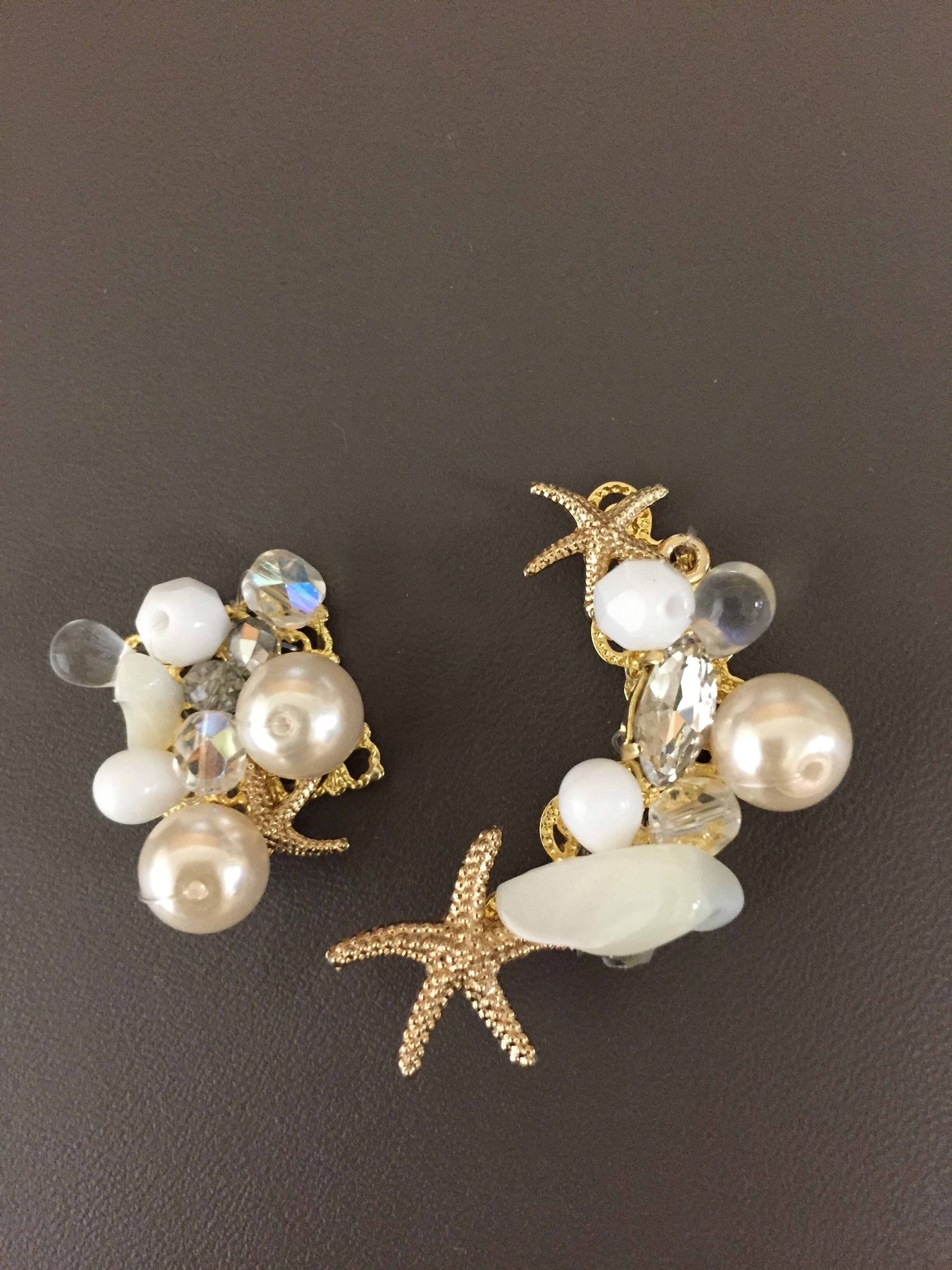 パーツの雰囲気かわって、ホワイト系スターフィッシュイヤーカフセットの再入荷☆