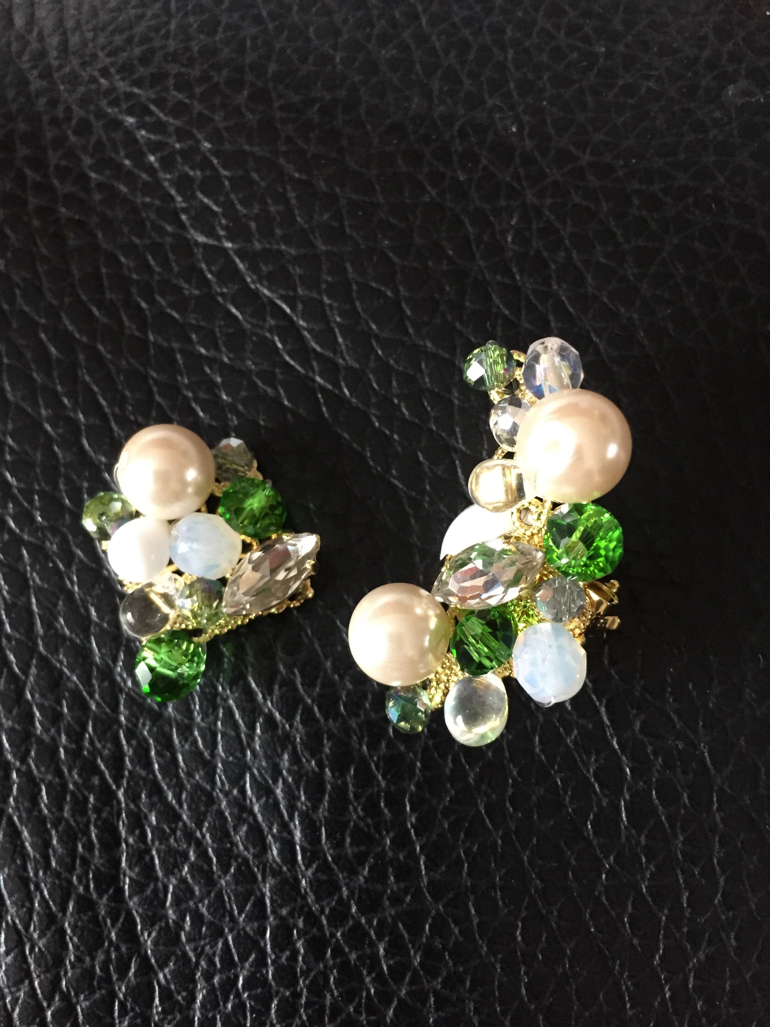 グリーン系のキラキライヤーカフセットです☆左右アシンメトリーがかわいいです❤️