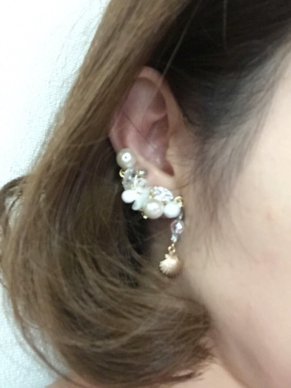 シェルゆらゆらイヤーカフセット☆ホワイトクリア系