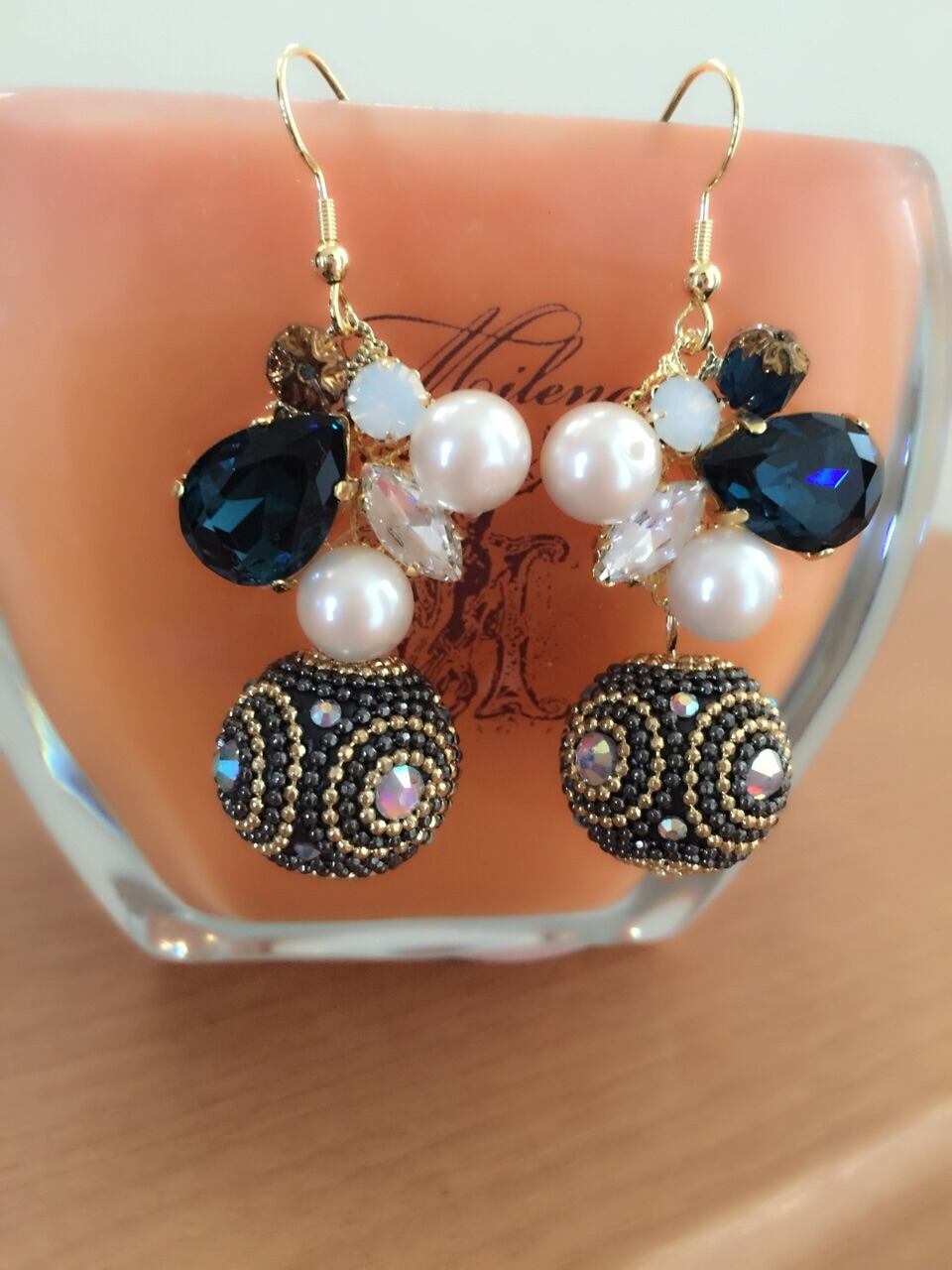 ネイビーキラキラボールピアスorイヤリング