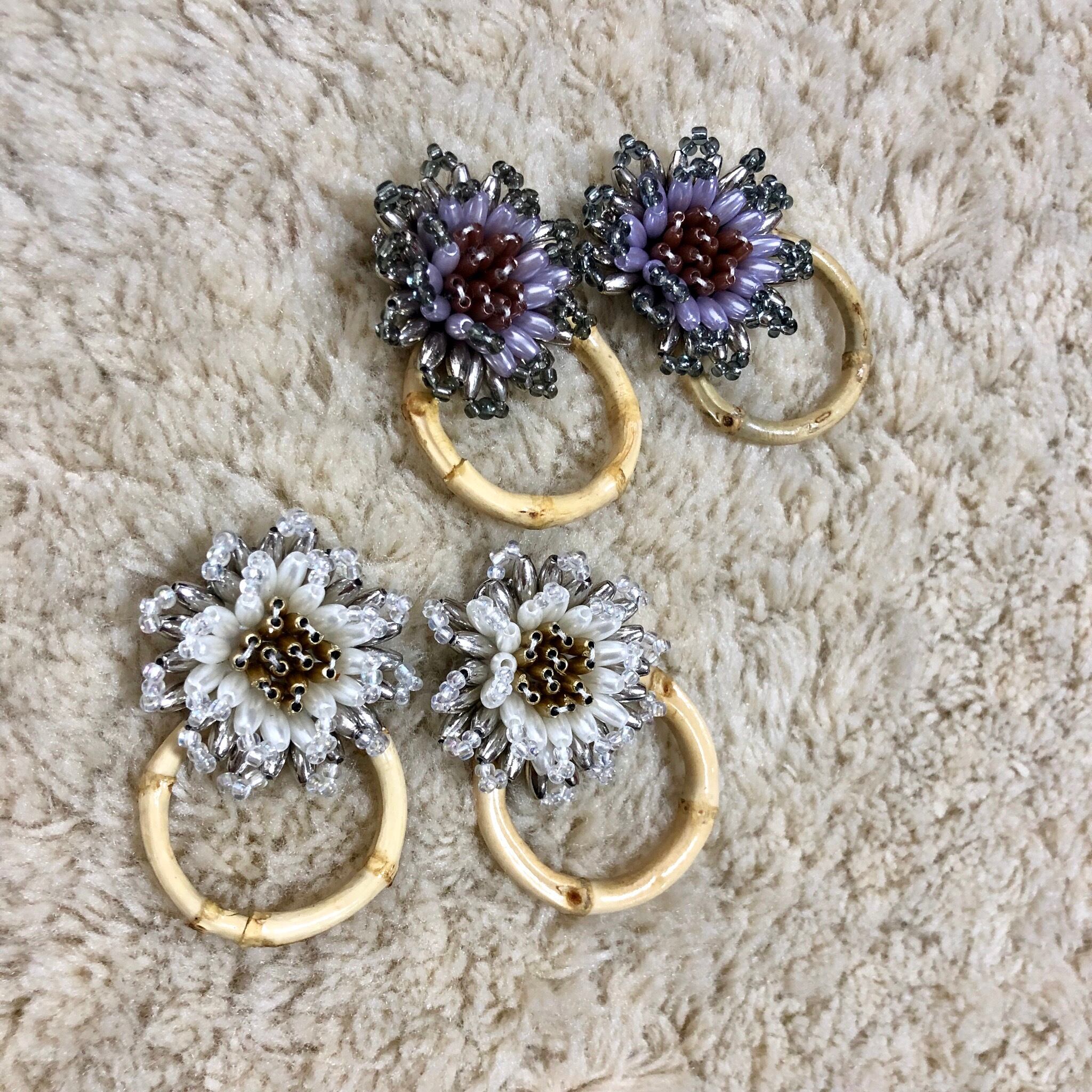 ビーズのくすみカラーのお花とバンブーリングの組み合わせがとてもおススメです☆