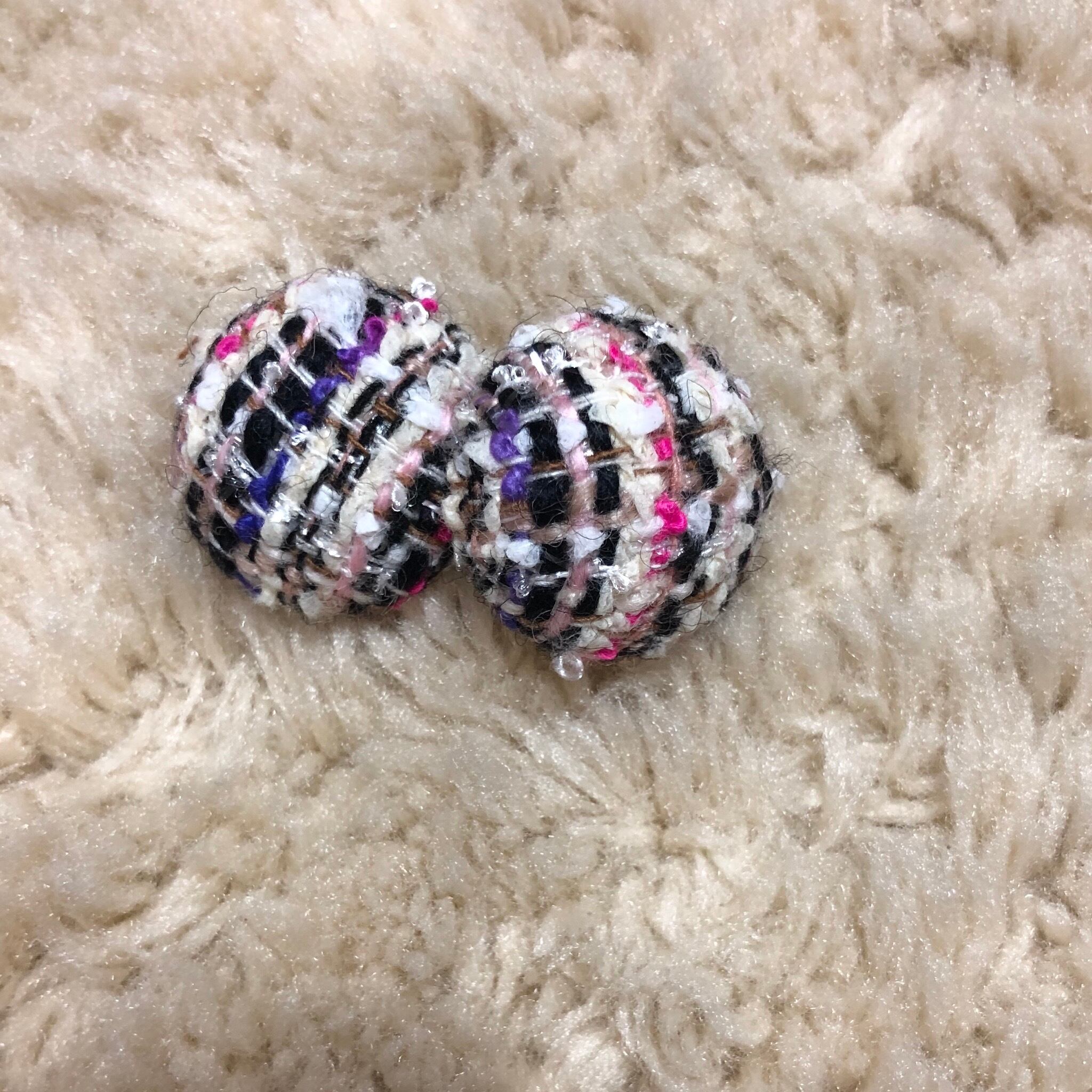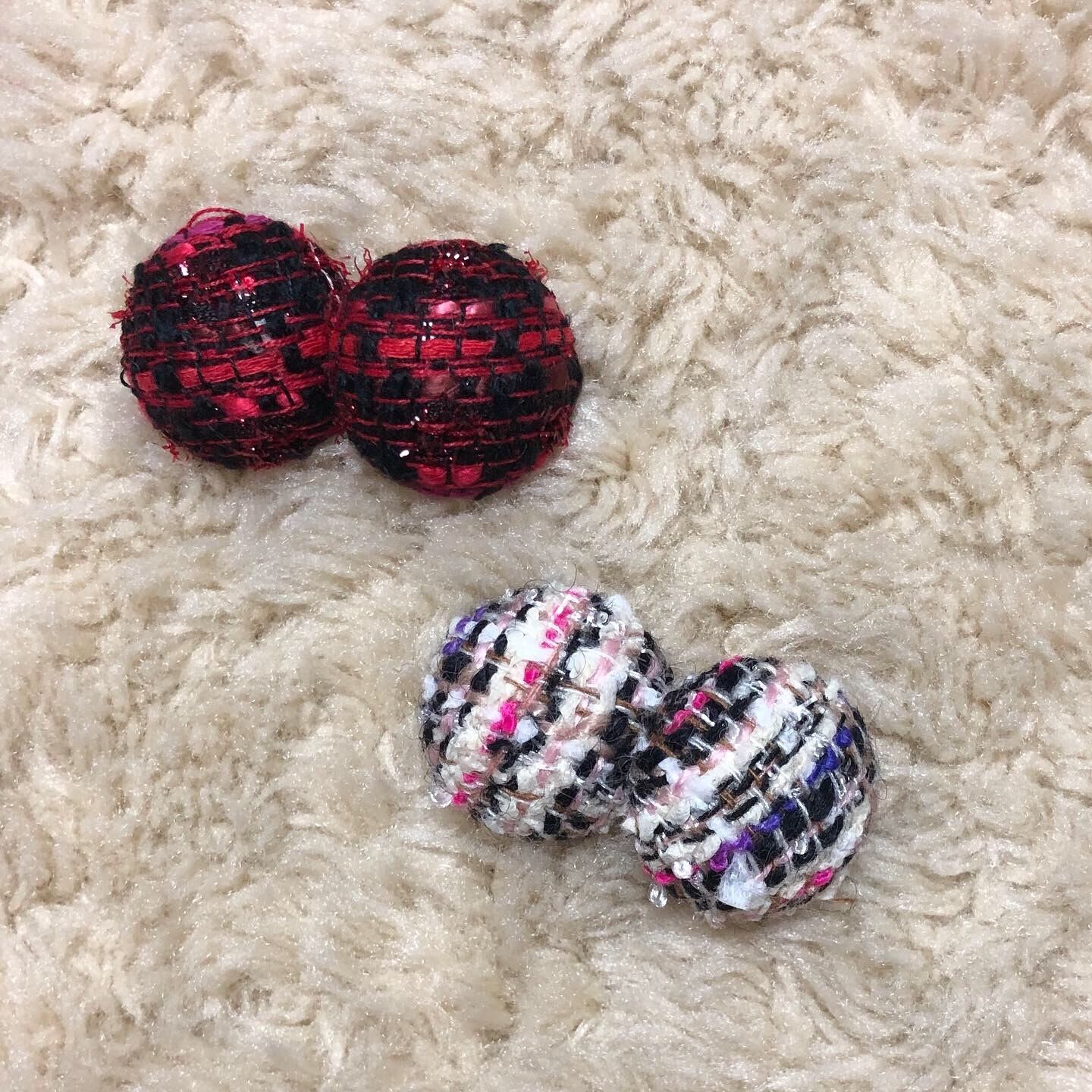 秋冬にぴったりなツイードのコロンとしたピアス、イヤリングです。