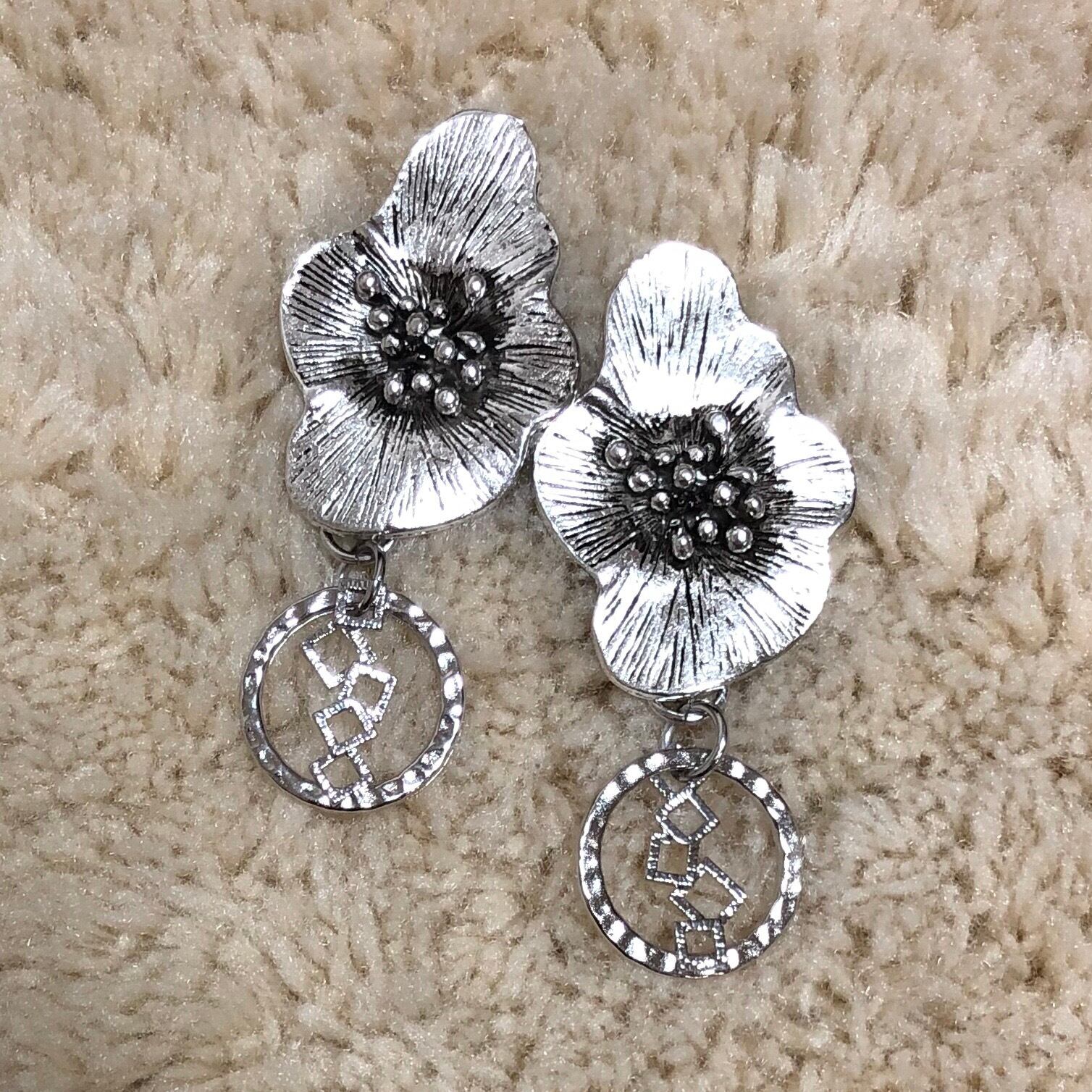 metal flower silver hoop☆pierce