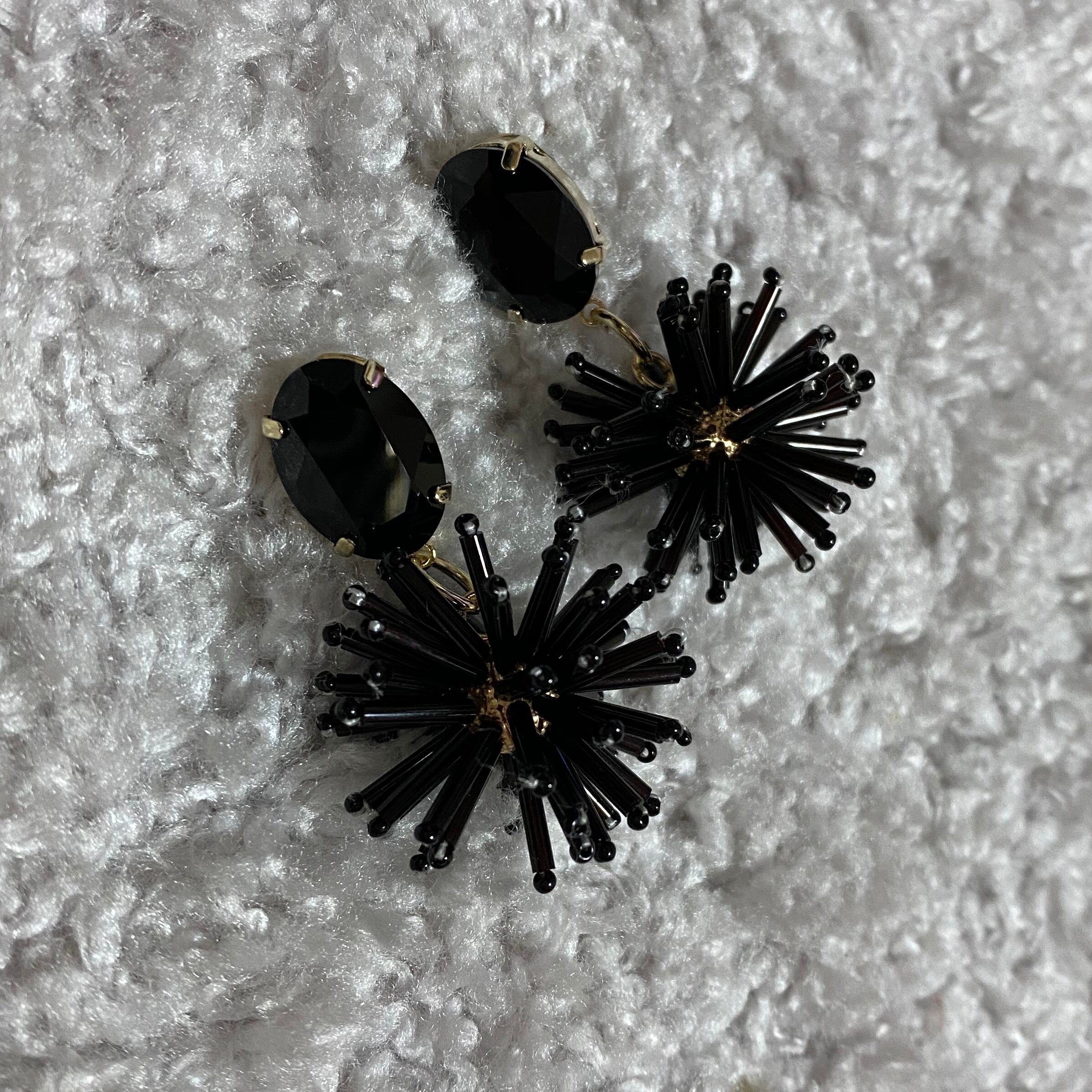 スワロフスキーのブラックとビーズの立体的なパーツと組み合わせています☆花火のようなお花のような雪の結晶のようなパーツです。