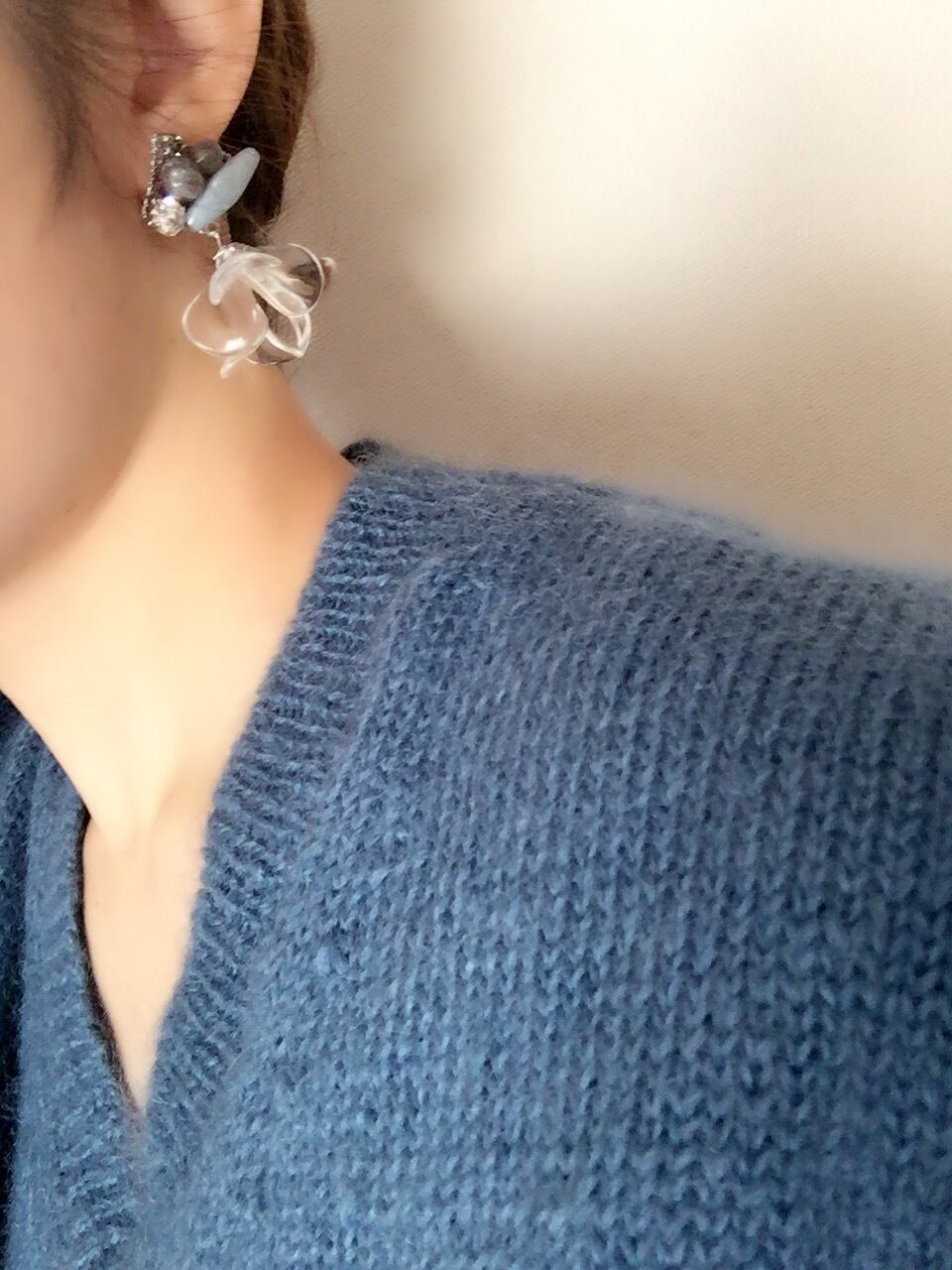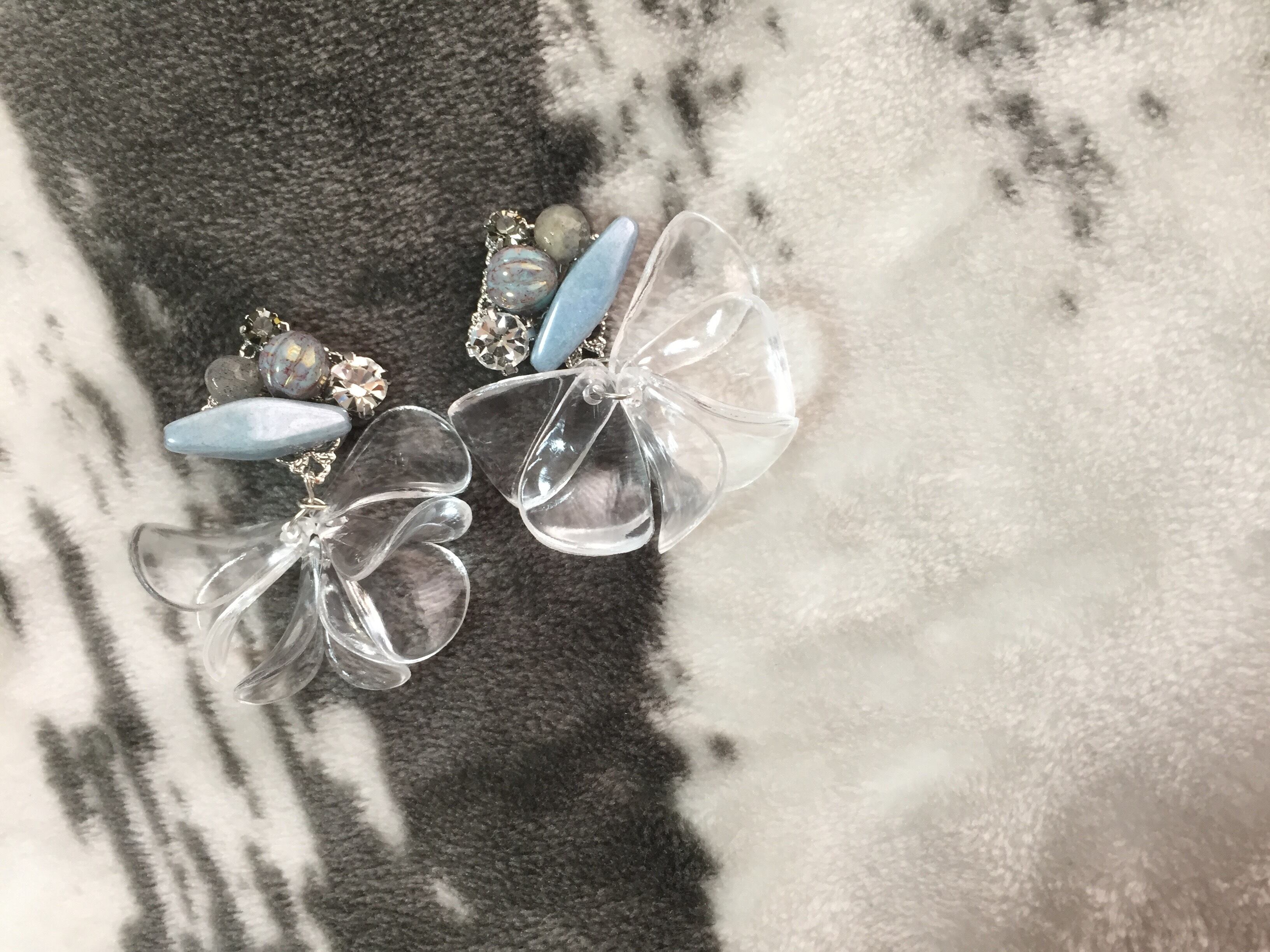 bluegreyとclearの花びらが涼しげなピアスです❤️