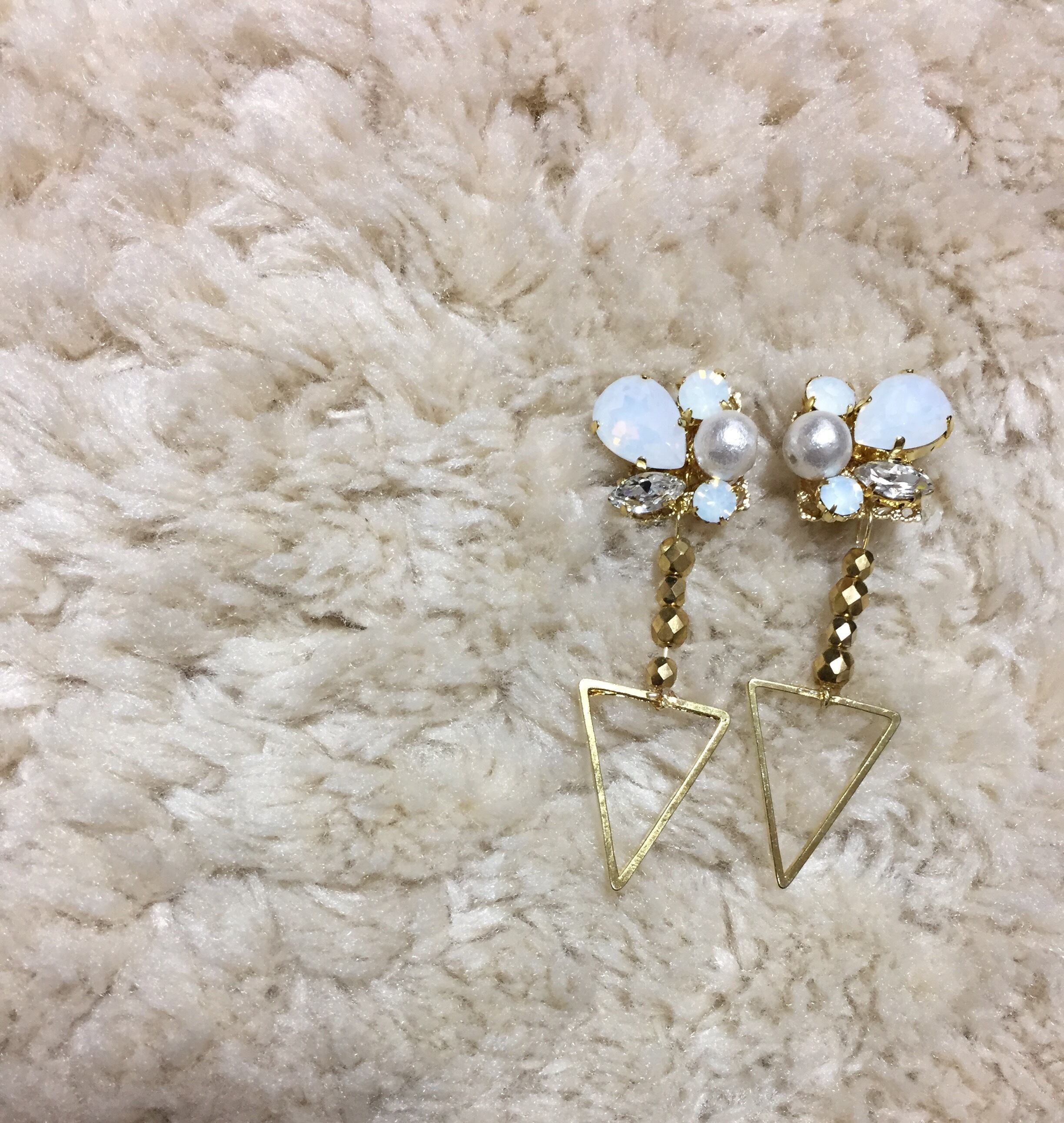 ゴールドとホワイト系bijouがゴージャスで長さもありますので、存在感のあるピアスです❤️
