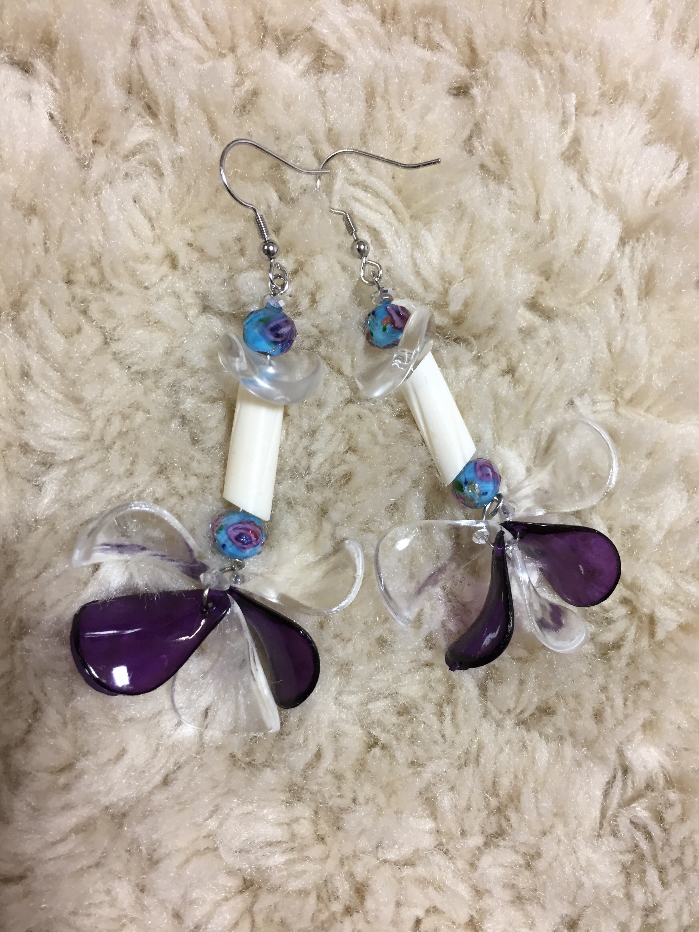 天然石、レアなマーブルパーツ、アクリルパーツとアクリルフラワーを組み合わせてつくりました☆