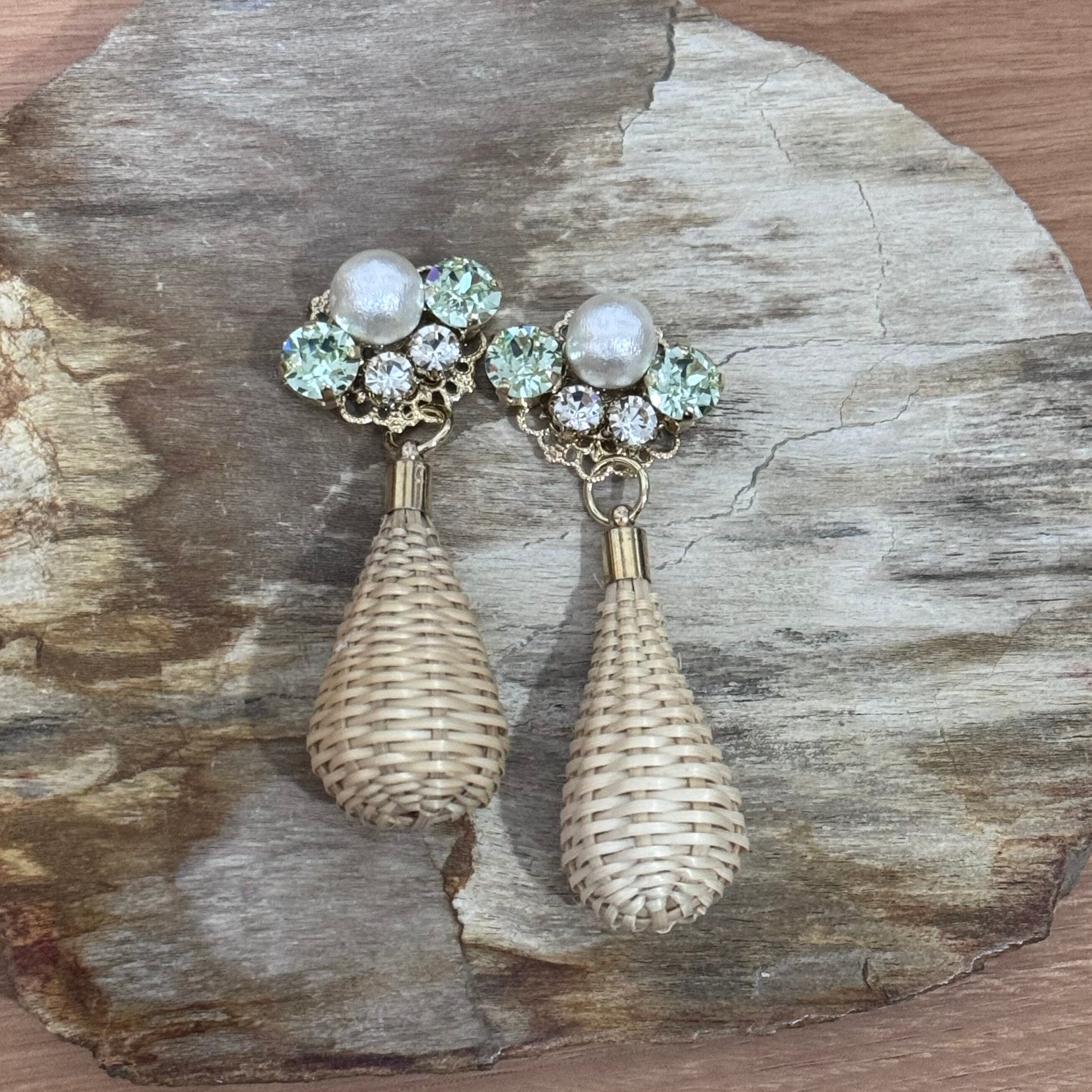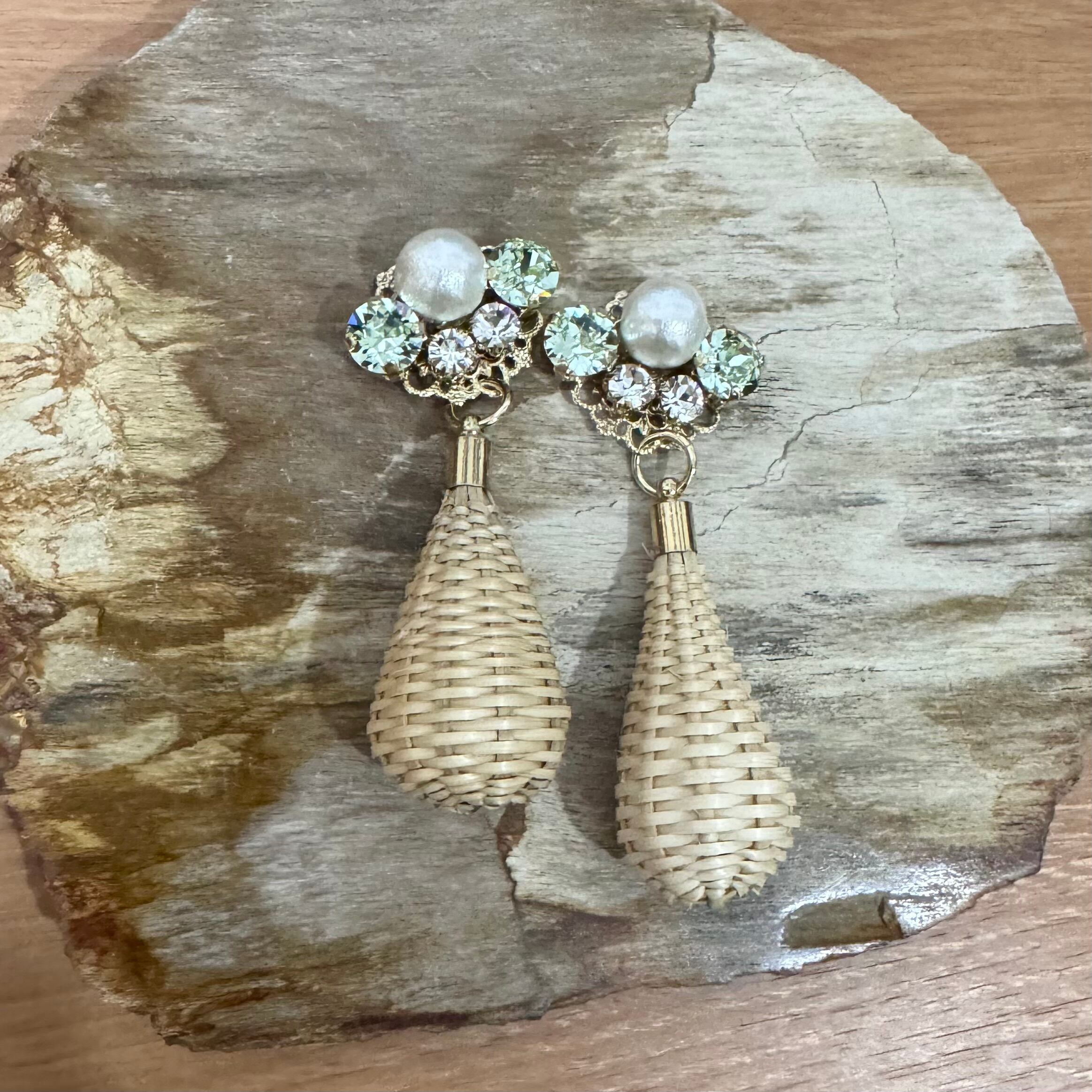 スワロフスキーとコットンパール、bijouのキラキラとラタンの組み合わせがなんとも涼しげでおすすめです!