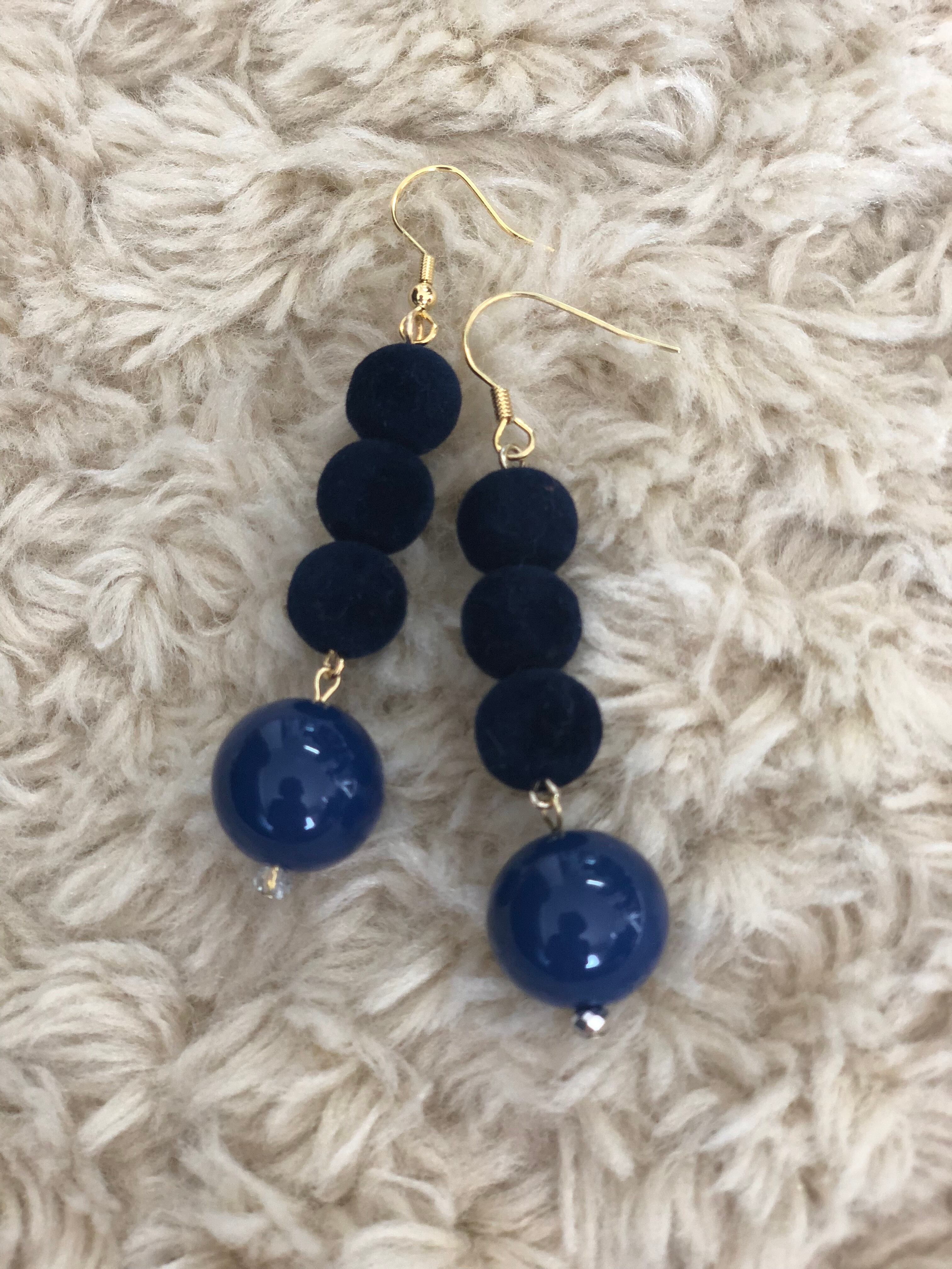 ベロアボール3つの下にアクリルのネイビーボールとキラキラビーズがポイントになっています☆